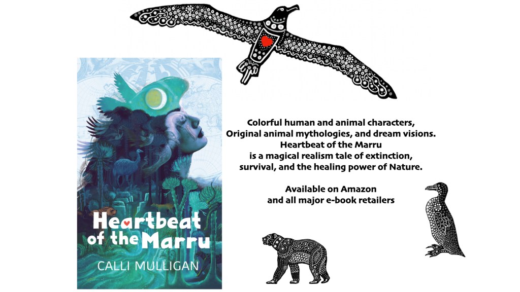 My novel Heartbeat of the Marru is a magical realism eco-mystery that explores our planet’s accelerating rate of extinction through the experiences of six young people and several animal characters who speak philosophically and at great length in the dreamtime. I didn’t write this book out of a conscious intention to “save the planet”; I wrote it because it was the story that came to me out of the unconscious, out of my longstanding interests in life.